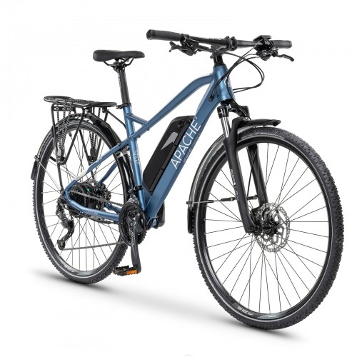 | Motor | Vaši jízdu vám zpříjemní tichá pohonná jednotka Apache Power Silent Plus s elektromotorem Silent Plus, který je zapletený ve středu zadního kola. Nominální výkon motoru je 250 W s maximálním točivým momentem až 45 Nm. Systém je vybaven takzvanou sinusovou technologií řízení, která se vyznačuje velmi tichým chodem a efektivnějším využitím energie. Vaše elektrokolo tak získává vyšší dojezd na jedno nabití a rozšiřuje vaše možnosti. U verze plus můžete zapnout i off-road mód bez omezovače výkonu motoru. |