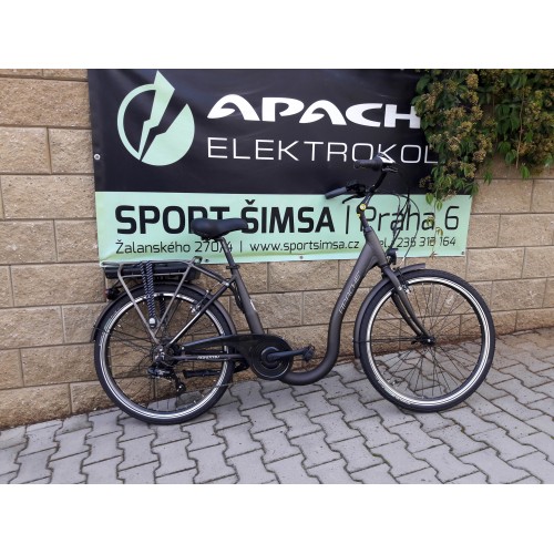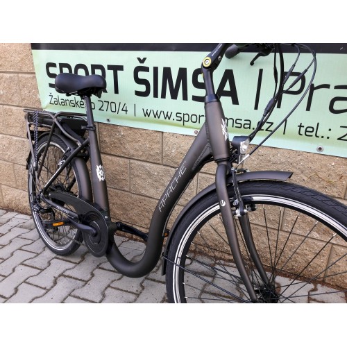 | Vlastnosti | KLÍČOVÉ VLASTNOSTI: elektrokolo s nejnižším nástupem v nabídce Apache tichý nábojový motor Apache Power Silent 250 W nosičová baterie s kapacitou 13 Ah (468 Wh) čitelný multifunkční LED displej s vestavěným nabíjecím USB konektorem brzdové páky s vypínačem (při brždění vypínají motor) osvětlení napájené z baterie dojezd až 110 km |