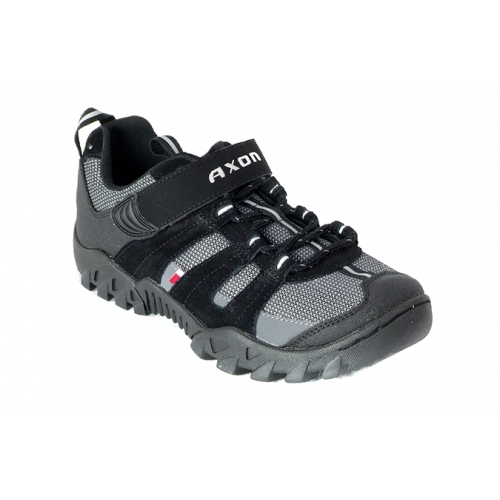 Zpevněná podrážka s hrubým vzorem, zpevněná pata, snímatelný kryt SPD zámku, stahování na tkaničku, stahovací přezka se suchým zipem, prodyšná nylonová tkanina, výztuha špičky, reflexní prvky kompatibilita: SPD materiál: přírodní kůže, pryž, polyesterové tkaniny hmotnost: 995g/pár 42