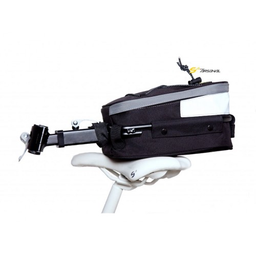 Brašna středního objemu s rychloupínacím hliníkovým nosičem na sedlovku. Brašna je vhodná pro převoz lehčích nákladů, ideální v případech, kdy nelze připevnit standardní nosiče (např. celoodpružené kolo, kolo s atypickou zadní stavbou)