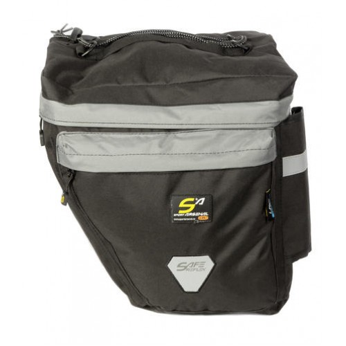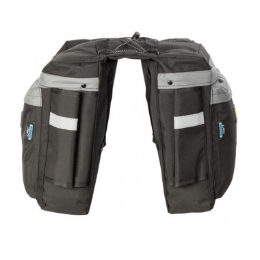 Velká a praktická dvojbrašna na zadní nosič pro vaše výlety! Brašna se k nosiči přichycuje pomocí gumicuku s háčkem. Obě hlavní kapsy i menší boční kapsičky jsou uzavíratelné zipem, dvě zadní otevřené kapsy jsou ideální pro převoz láhví na vodu (max. 1,5l)