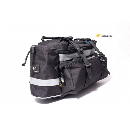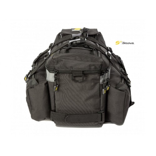 Víceúčelová brašna na zadní, nebo přední nosič s nastavitelným objemem - v případě rozepnutí horního zipu. Brašna má jednu velkou vnitřní kapsu a čtyři postranní vnější kapsy na zip pro praktické rozložení nákladu. Nasazení brašny je snadné, za pomoci suchých zipů. Dva stahovací popruhy napevno stahují vnitřní náklad, boky brašny jsou polstrované.