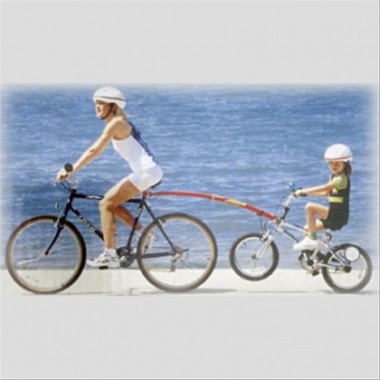 Vodící tyč Trail-Gator Vodící tyč pro spojení dětského kola s kolem dospělého. Tyč je složena na kole dospělého, lze ji kdykoliv, bez použití nářadí, připojit k úchytu namontovaném na dětském kole. Dětské kolo má pak stabilizované řidítka proti otočení