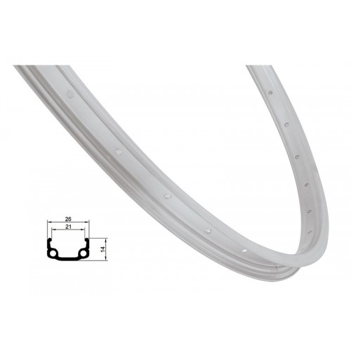Plášťový ráfek osvědčené konstrukce jednostěnný, pro běžné použití - 305x21, stříbrná barva 36 děr, V-brzdy