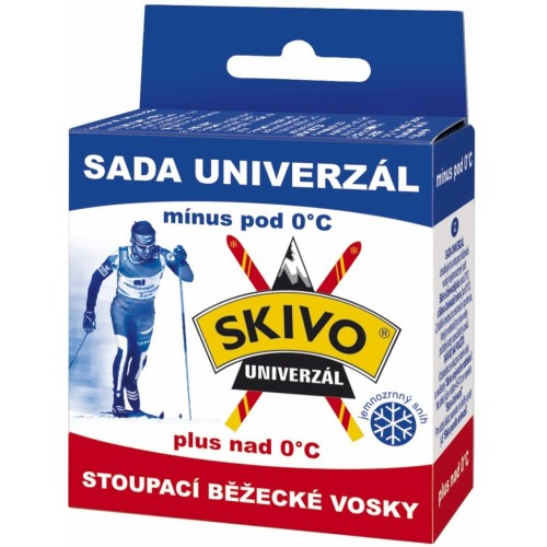 Univerzální souprava obsahující 2 pevné vosky pro běžecké lyže. Rozsah použití: dva univerzální vosky, Skivo Univerzál plus a Skivo Univerzál mínus. Vosky pro zajištění dobrého odrazu a stoupání běžeckých lyží na jemnozrnném sněhu při všech teplotách. Souprava je určena pro začátečníky a rekreační lyžaře.