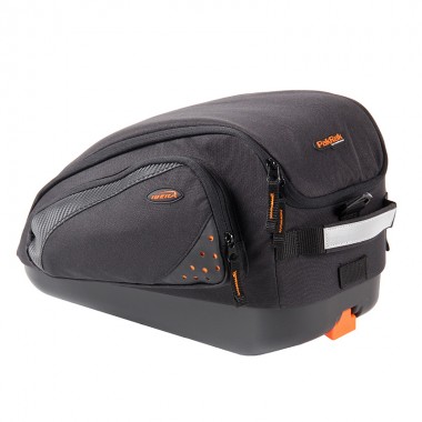 Hlavní polstrovaná kapsa pro ochranu křehkých předmětů, vnitřní síťovaná kapsa, 2 vnější boční kapsy, odepínatelná páska pro nošení přes rameno. Reflexní prvky, pásek pro připnutí zadní blikačky.
