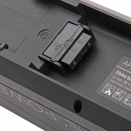 ![]() | Rámová baterie se instaluje na spodní rámovou trubku pomocí držáku, který se připevní do závitů košíku lahve. Držák není dodáván společně s baterií a jeho součástí je integrovaná řídící jednotka umístěna ve vodotěsném boxu. K baterii nejsou dodávány 3 ks gumových podložek pro vymezení vůle mezi držákem baterie a rámem. V případě kompletní elektrosady je dodáván držák + řídící jednotka + 3 ks podložek. |