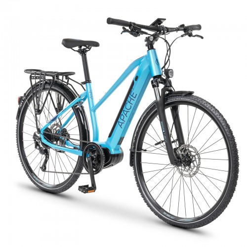 Popis Vyražte na rodinný výlet nebo aktivní sportovní dovolenou. S elektrokolem Apache Matta Tour MX-I nezáleží, jak dlouhá to bude cesta, vždy to bude zábavné dobrodružství. Tento model otevře dveře novým zážitkům. Rám s integrovaným vedením bowdenů a hadic, s nižším nástupem a v praktickém osazení. Kombinace, kterou každá žena ocení. Využít můžete zadní nosič a za nepříznivých podmínek se můžete spolehnout na blatníky či osvětlení napájené z baterie, samozřejmostí je stojánek. Pro model Matta je to téměř už jako povinná výbava. Nechybí kvalitní hydraulické brzdy a řazení Shimano. Pomocí stavitelného představce si nastavte optimální sklon pro co nejpříjemnější posed a můžete vyrazit vstříc novým zážitkům.