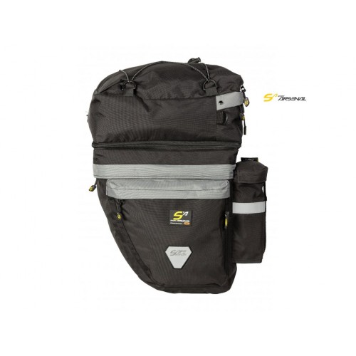 Velká a praktická trojbrašna na zadní nosič s odnímatelnou horní spacákovou brašnou je ideální pro vaše výlety! Brašna se k nosiči přichycuje pomocí gumicuku s háčkem. Tři hlavní kapsy i menší boční kapsičky jsou uzavíratelné zipem, dvě zadní otevřené kapsy jsou ideální pro převoz láhví na vodu (max. 1,5l). Horní spacákovou brašnu po odepnutí můžete využít jako brašnu přes rameno. Na víku spacákové brašny je praktická menší kapsa na drobnosti (mobil, klíče, peníze).